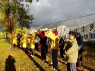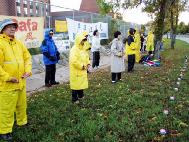 [Minh Huệ] Vào ngày Quốc khánh của Trung quốc, một đệ tử Pháp Luân Công bị đánh đập rất dã man và bị bắt bởi công an Trung quốc tại Thiên an môn. Vào ngày 2 tháng 10, các đệ tử Pháp Luân Công tại Ottawa đã tập trung trước toà Đại sứ Trung quốc mặc dầu trời mưa tầm tã, để kêu gọi chấm dứt chính sách khủng bố dã man đó.