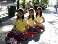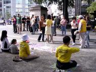 [Minh Huệ] Trong 2 tháng vừa qua, các đệ tử Pháp Luân Công trong áo màu vàng đã có mặt khắp nơi tại Manhattan — tại các ngã tư, công viên, hay những nơi đông đúc. Họ thường biểu diễn các bài Công Pháp hay trưng bày, triển lãm để vạch trần chính sách khủng bố dã man của chính quyền Trung quốc với Pháp Luân Công. Pháp Luân Công đã trở thành một biểu tượng khá phổ biến tại thành phố Nữu ước.