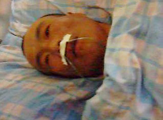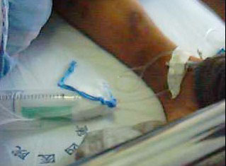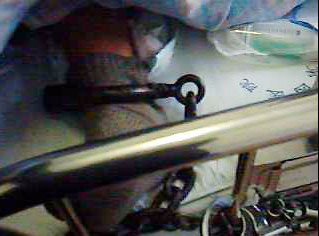 Mặc dầu còn rất yếu, nhưng anh Cheng Peiming vẫn bị xích vào giường