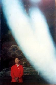 Một trường năng lượng xuất hiện khi chụp hình một học viên Pháp Luân Đại Pháp tại chùa Đại Phật tự.