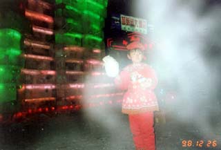 Trường năng lượng xuất hiện quanh một tiểu đệ tử tại hội Băng Đăng (đèn băng).