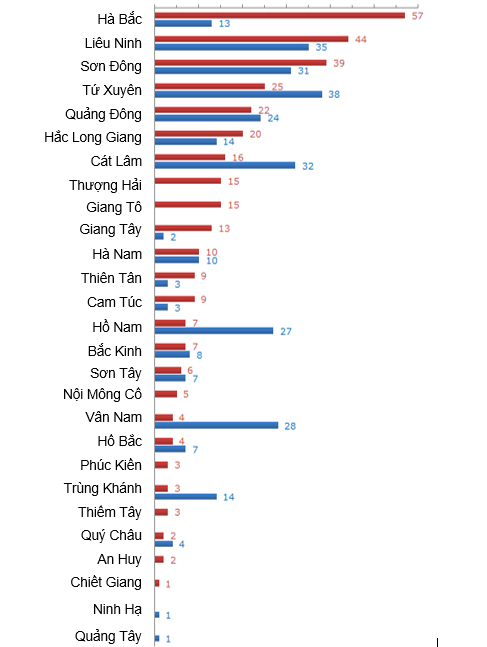 Những cuộc bắt giữ trong tháng 5 năm 2019 diễn ra ở 25 tỉnh và thành phố trực thuộc trung ương. Trong số đó, 11 khu vực báo cáo số trường hợp bị bắt giữ lên đến 2 con số, đứng đầu là tỉnh Hà Bắc với 57 trường hợp, tiếp theo là tỉnh Liêu Ninh và tỉnh Sơn Đông với số trường hợp lần lượt là 44 và 39.