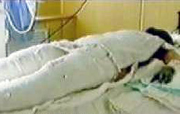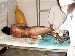 Riêng nạn nhân ‘bị bỏng’ của Đài Truyền hình Trung Ương Trung Quốc được quấn băng kín mít, và phóng viên truyền hình được tiếp xúc thoải mái, không cần cách ly chút gì