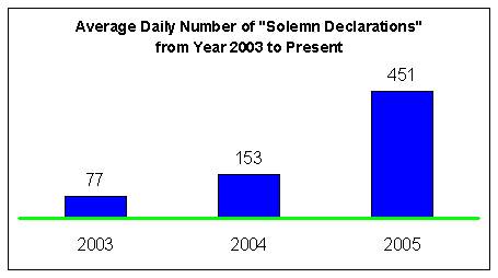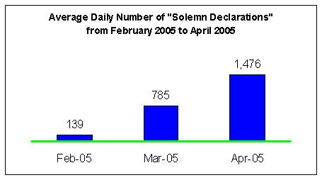 Nếu theo dữ liệu nhận được từ tháng Hai năm 2005, theo hàng tháng tính toán thì trung bình hàng ngày có 139, 785 và 1.476 “nghiêm chính thanh minh”.