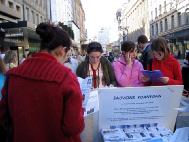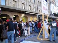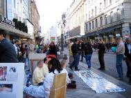 [MINH HUỆ 28-3-2005] Nhân dịp Hội nghị Nhân quyền Liên hiệp Quốc năm nay tại Giơ-ne-vơ (Geneva), các học viên Pháp Luân Công tại Thuỵ sỹ đã tổ chức mỗi tuần một lần cuộc triển lãm chống tra tấn ngay trên đường phố nhằm vạch trần bộ mặt thật của cuộc đàn áp Pháp Luân Công do Giang Trạch Dân phát động tại Trung Quốc. Cảnh tượng đặc biệt ấy đã thu hút chú ý của nhiều người dân và du khách.