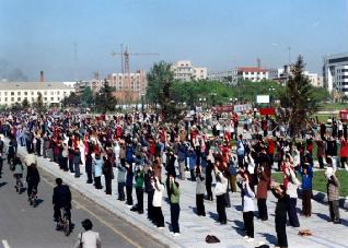 [MINH HUỆ 26-3-2005] Hình ảnh các học viên Pháp Luân Công luyện công tập thể tại thành phố Trường Xuân, tỉnh Cát Lâm, Trung Quốc vào những năm trước 1999 khi cuộc đàn áp Pháp Luân Công chưa xảy ra. Những tấm hình ghi tại quảng trường Văn Hoá (trước là cung Địa Chất) và quảng trường Chế Tạo Ô-tô.