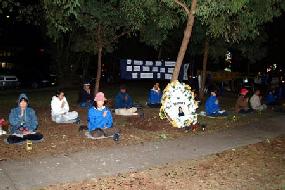 Đó là một ngày lạnh lẽo nhất ở Autralia kể từ mùa đông bắt đầu. Mưa vừa mới tạnh, thì gió lạnh lại thổi. Bóng đêm đổ xuống rất nhanh. Các Đệ tử thắp nến, phát chính niệm, sau đó giăng lên những tài tiệu và trình chiếu những đoạn phim giảng rõ sự thật, trong giá lạnh.