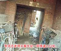 Căn nhà trước đây của Sư phụ Lý Hồng Chí tọa lạc tại Quảng trường Xây dựng tại thành phố Trường Xuân. Đó là một cư xá cũ thông thường (xem ảnh 1). Xem lối kiến trúc của căn nhà và môi trường chung quanh, người ta có thể dễ dàng nhận thấy rằng nó rất xa cái gọi là “tòa biệt điện xa hoa” mà báo chí Đảng Cộng sản Trung quốc diễn tả (xem hình ảnh 3 & 4). Căn phòng ốc của Sư phụ Lý Hồng Chí nằm ở tầng lầu bốn, tầng cao nhất (xem hình 5). Cửa của nó bị niêm phong bằng một băng vãi đề năm 1999 (xem hình 2). (Các hình ảnh được đăng ngày 9 tháng mười một năm 2000 trên mạn lưới Minghui dưới tựa đề, “Sự thật về ‘Biệt thự xa hoa tại thành phố Trường Xuân’”)