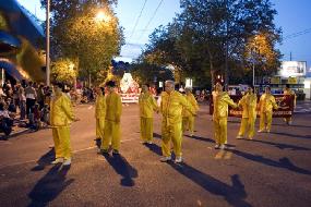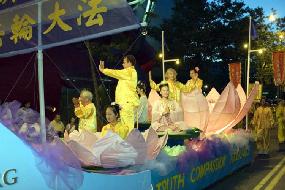 Lần đầu tiên, khán giả được nhìn thấy một “Con thuyền Pháp Luân Đại Pháp” khổng lồ giữa đoàn diễu hành Pháp Luân Công. Các học viên từ Portland, Oregon, Vancouver, Canada và bang Washington cùng đều tham dự. Hai đệ tử dương cao biểu ngữ “Pháp Luân Đại Pháp” dẫn đầu đoàn diễu hành. Tiếp theo là hai Đệ tử trình diễn màn Múa Sư tử truyền thống. Sau màn múa là “Con thuyền Páp Luân Đại Pháp” sáng rực. Các học viên dương lên các biểu ngữ “Pháp Luân Đại Pháp” và “Chân-Thiện-Nhẫn” trên con thuyền. Phần đuôi của con thuyền được thiết kế nổi và các Đệ tử biểu diễn các bài động tác của Đại Viên Mãn Pháp và thiền định trên các toà sen.