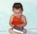 Hồi San San lên sáu tháng, tôi bắt đầu mang nó đến nơi học Pháp để xem băng thâu hình các bài Pháp giảng và học Pháp chung với chúng tôi. Nó đặc biệt thích nhìn hình của Sư phụ và đọc Luận ngữ, bài tựa của Chuyển Pháp Luân. Không ai trực tiếp dạy nó một điều gì, nhưng đến lúc nó 18 tháng, nó đã có thể đọc lòng năm bài khẩu quyết công pháp. Nó nói nó học từ máy thâu âm. Sau đó chúng tôi bắt đầu dạy nó học thuộc lòng các bài kinh văn của Sư phụ. Không bao lâu nó có thể đọc thuộc lòng hơn mười bài kinh văn ngắn. Khi nó hai tuổi và bảy tháng, nó đã học đọc thuộc lòng nhiều bài kinh văn của Sư phụ, kể cả Luận ngữ, Rộng lớn, Chân tu, Ngộ, Bái sư, và Pháp định. Nó cũng học ngồi kiết già với đôi chân tréo trồng lên nhau. Nó thường nói, “Con là một học viên.”