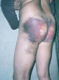 Cô Lưu Quí Chi (51 tuổi) đã bị đánh dã man và bị hãm hiếp. Hông và đùi cô bị nhiều vết thâm tím.