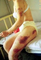 Vào tối ngày 14, tháng 5, 2001, một học viên nữ Pháp Luân Công từ Bắc Kinh đã bị đánh và bị cưỡng gian ngay trên đường phố bởi một viên chức cảnh sát. Tấm hình trên được chụp lại 9 ngày sau khi sự việc xảy ra.