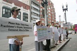 Các đệ tử Pháp Luân Công mặc áo để vạch trần ĐCSTQ mổ cắp và bán các bộ phận nội tạng. Họ gây được nhiều sự chú ý với các bác sĩ và dân địa phương tại Boston. Các bác sĩ đến và đi từ Hynes Convention Center bày tỏ lòng ủng hộ cho Pháp Luân Công bằng cách mua các áo đó. Một bác sĩ từ Ấn độ nói rằng “Chúng tôi có thể làm gì được để ngăn chặn các bác sĩ Trung Quốc không cho họ gia nhập vào các tổ chức Cây ghép nội tạng thế giới, vì những gì họ làm là trái ngược lại ý nguyện của các tổ chức này”.