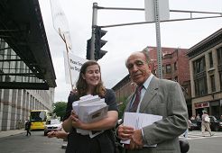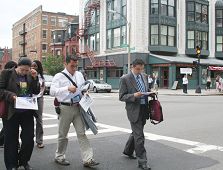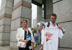 Kay Harmon, đệ tử Pháp Luân Công từ Orlando, Florida, đứng ngay trước cổng của Hyens Convention Center tại Boston rất sớm vào sáng ngày 23 tháng 7, để phát “Bản Báo cáo Độc lập về Mổ cắp các bộ phận nội tạng từ các đệ tử Pháp Luân Công tại Trung Quốc” cho từng bác sĩ đến tham dự Hội Nghị Thế Giới về Cấy ghép. Rất nhiều bác sĩ đã biết về thảm trạng này.