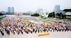 Sư phụ Lý Hồng Chí dạy Pháp Luân Công tại Vũ Hán năm lần và được dân chúng Vũ Hán rất hoan nghênh. Các học viên Vũ Hán đã tổ chức nhiều nơi tập công đại qui mô. Hình thức đặc biệt trên đây được thực hiện bởi năm ngàn học viên. (1997)