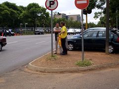Các học viên Pháp Luân Công trưng bày các băng vải của họ và một băng vải viết rằng, “Pháp Luân Đại Pháp Hảo” Họ nói câu chuyện Pháp Luân Công cho lính an ninh và dân chúng. Dân chúng Nam Phi tỏ sự ủng hộ và chúc lành của họ một cách thân thiện.