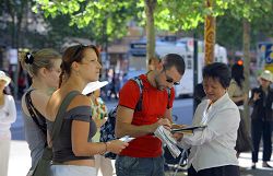 Duncan McGrath, một sinh viên trường Đại học quốc gia Úc, nhận các tài liệu giảng chân tượng và kí vào thư kêu gọi. Cậu ta nói với phóng viên là chuyên ngành học của cậu là Quan hệ quốc tế, và cậu ta ủng hộ các nỗ lực cải thiện các điều kiện về quyền con người. Cậu cũng ủng hộ Liên minh Điều tra sự Bức hại Pháp Luân Công về yêu cầu được vào Trung Quốc để tiến hành một cuộc điều tra độc lập.