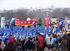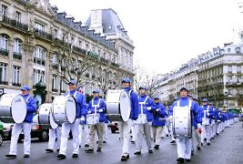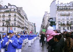 [MINH HUỆ 6-1-2007] Vào ngày cuối cùng của năm 2006 và ngày đầu tiên của năm 2007, Đoàn nhạc Tian Guo Châu Âu, bao gồm 160 đệ tử Pháp Luân Công, thực hiện ở Paris, chứng thực sự đẹp đẽ của Pháp Luân Đại Pháp trong 4 đoàn diễu hành. Pháp Luân Đại Pháp Học Hội ở Pháp diễu hành 2 đoàn ở khu buôn bán và khu phố Tàu, Paris. Các đệ tử cũng mời 2 đoàn diễu hành ở Paris Parade Festival. Thực hiện bởi Đoàn nhạc Tian Guo được chào đón và hoan nghênh nhiệt liệt.