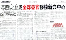 Một bài viết tựa là “Trung Quốc đã trở thành Trung tâm Cấy tạng cho toàn thế giới” được đăng nơi trang sáu của tờ nhật báo LifeDigest từ Trung Quốc ngày 3 tháng ba 2006. Thể theo tác giả, số lượng những bệnh nhân ngoại quốc đang cần cấy tạng đã gia tăng rất nhiều. Đó là trường hợp của Sở Y viện Cấy tạng Trung ương thành phố Thiên Tân số 1 Sở bệnh nhân ngoại viện, cũng gọi là Trung tâm Cấy tạng Đông phương (TTCTĐP). Cơ sở này bắt đầu nhận các bệnh nhân [cấy tạng] Cao Ly trong năm 2002. Số lượng các bệnh nhân gia tăng đến 500 trong năm 2006.