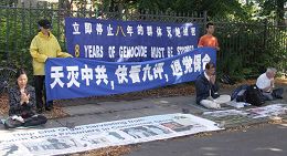 [MINH HUỆ 22-07-2007] Ngày 20 tháng Bảy 2007 đánh dấu tám năm dài cuộc bức hại tàn bạo Pháp Luân Công bởi chế độ Trung Cộng. Các học viên Pháp Luân Công tại Đan Mạch đã tổ chức một cuộc tụ họp tại Toà Đại sứ Trung Quốc tại Copenhagen, lên án các tội ác của chế độ Trung Cộng chống nhân loại trong cuộc bức hại Pháp Luân Công. Họ kêu gọi ngưng ngay cuộc bức hại Pháp Luân Công và thông tin cho dân chúng biết sự thật của cuộc bức hại.