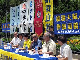 Trong bài tuyên cáo, các học viên tóm lược lịch sử cuộc đàn áp Pháp Luân Công tại Trung Quốc và phơi bày sự tra tấn tàn bạo mà Đảng Cộng sản Trung Quốc (ĐCSTQ) đã và đang sử dụng trên các học viên. Các học viên giới thiệu các vụ kiện chống Giang trạch Dân, Lý Lan Thanh (Li Lanqing) và La Cán (Luo Gan), nộp bởi các học viên Hồng Kông ngày 28 tháng sáu 2007. Trong bản tuyên cáo, các học viên cũng phơi bày các sự kiện trục xuất mạnh bạo. Trước ngày 1 tháng bảy 2007, ĐCSTQ đã áp lực lên chính quyền Hồng Kông và trục xuất mạnh bạo hơn 480 học viên Pháp Luân Công Đài Loan. Hơn nữa, hơn 250 đơn xin visa của các học viên Đài Loan để đi vào Hương cảng đã bị từ chối. Sự trục xuất đã vi phạm nhân quyền của các học viên Pháp Luân Công và làm tổn hại đến hình ảnh của Hồng Kông. Các học viên kêu gọi dân chúng Trung Quốc và chính phủ Hồng Kông đừng giúp đỡ ĐCSTQ nữa. Họ chỉ ra rằng hơn 23 triệu người Trung hoa đã nhìn nhận bản chất tà ác của ĐCSTQ và đã thoái xuất khỏi Đảng. ĐCSTQ sắp bị sụp đổ. Các học viên kêu gọi dân chúng Trung hoa rời bỏ ĐCSTQ. Họ kêu gọi chính phủ Hồng Kông đừng cúi đầu trước ĐCSTQ và hãy lấy quyết định đúng trước khi ĐCSTQ sụp đổ.