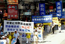 [MINH HUỆ 16-07-2007] Ngày 14 tháng bảy 2007, hàng trăm học viên Pháp Luân Công tại Hồng Kông đã tổ chức một cuộc tập hợp tại Công viên Victoria, Bãi Causeway, để phản đối cuộc đàn áp Pháp Luân Công tại Trung Quốc phát động bởi Giang trạch Dân và các đồng đảng ngày 20 tháng bảy 1999. Szeto Wah, chủ tịch của Liên Hội Hồng Kông Ủng hộ các Phong trào Dân chủ Yêu nước tại Trung Quốc (Hồng Kông Alliance in Support of Patriotic Democratic Movements in China), Lam Wing-yin, thành viên Hội đồng Vùng Sai Kung, Tsang Kin Shing, thành viên Hội đồng miền Đông, và cha cố đạo Fung Chi Wood, một cựu thành viên của Hội đồng Pháp luật, được mời phát biểu tại cuộc tập hợp. Sau đó, các học viên tổ chức đi diễn hành, đến Văn Phòng Liên lạc của chính quyền Trung ương Nhân Dân của Khu Hành chính Đặc biệt Hồng Kông, tại nơi đó học đọc một bản tuyên cáo.