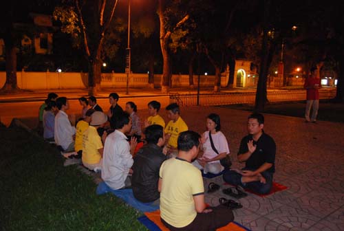 [MINH HUỆ] Hàng tuần, vào tối thứ 2, thứ 4 và thứ 6, các học viên Pháp Luân Công ở Hà Nội lại đến vườn hoa đối diện với Đại sứ quán Trung Quốc để phát chính niệm và học Pháp chung thể hiện sự thỉnh nguyện đến chính quyền Trung Quốc yêu cầu chấm dứt cuộc đàn áp tàn bạo của Đảng Cộng sản Trung Quốc (ĐCSTQ) đối với các học viên Pháp Luân Công tại quốc gia này.
