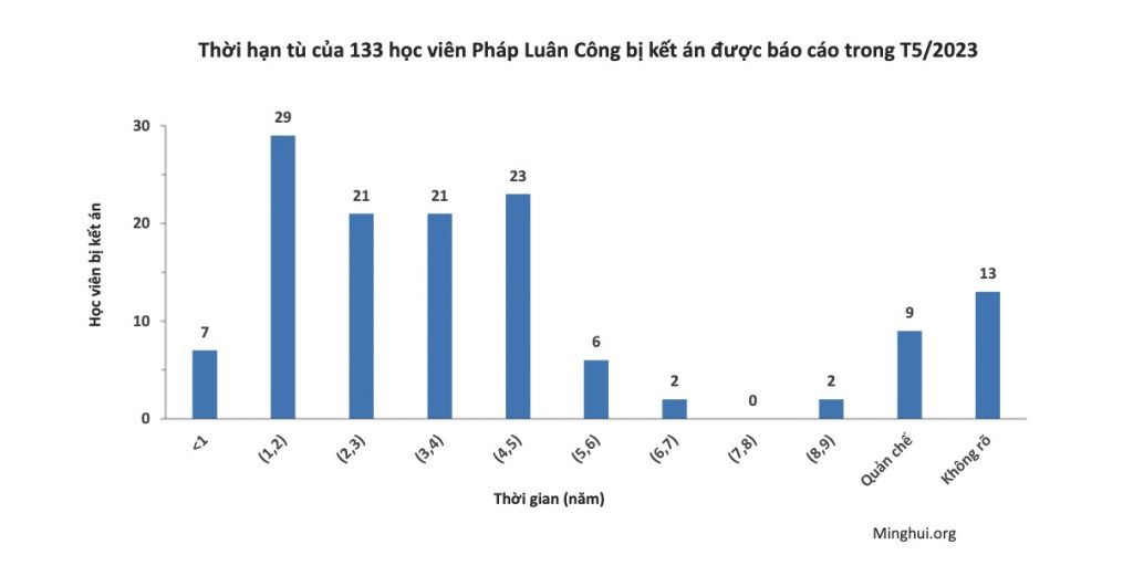 [MINH HUỆ 05-06-2023] Tháng 5 năm 2023 đã ghi nhận tổng cộng 133 học viên Pháp Luân Công bị kết án vì kiên định đức tin.