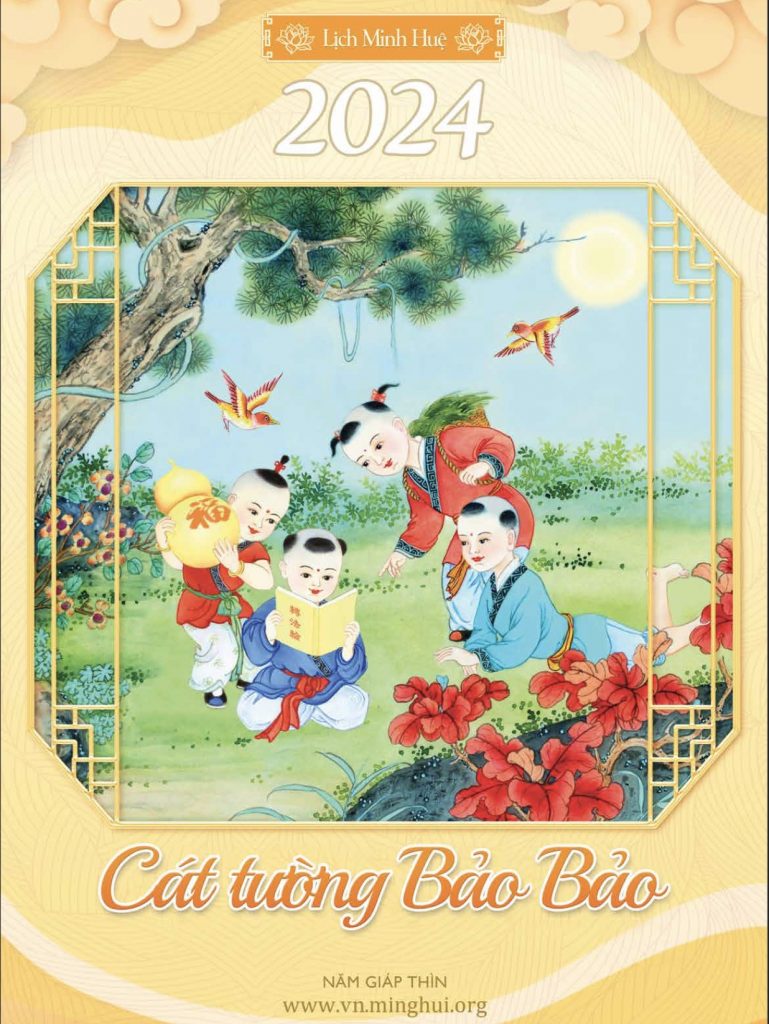 Ghi chú: Đây là hai phiên bản lịch quyển và lịch tờ chính thức và duy nhất của Minh Huệ Việt Ngữ năm 2024 (Tham chiếu từ phiên bản dành cho Đại Lục). Vui lòng không tự ý chỉnh sửa dưới mọi hình thức. Xin cảm ơn mọi ý kiến đóng góp của quý độc giả!