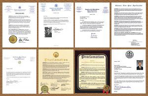 Quan chức chính phủ từ Liên bang, Tiểu bang và Thành phố đã ban bằng công nhận và viết thư chào mừng cho Chương trình Văn nghệ Tết Nguyên đán. Hàng trên từ trái: Dân biểu Quốc hội Bob Filner, Darrell Issa, và Suzan Davis, và Dân biểu Tiểu bang Joel Anderson. Hàng dưới từ trái: Dân biểu Tiểu bang Denise Moreno Duchheny, Thị trưởng Vista Morris Vance, Thị thưởng Carlsbad Claude A. “Bud” Lewis, Nghị viên Hội đồng thành phố San Diego Brian Maienschein. (Hình lấy từ website chính thức của nhà nước)