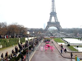 Paris, Pháp: Ngày 1-1-2008, các đệ tử Đại Pháp tổ chức diễu hành và các chương trình nghệ thuật, tham gia cùng hội xuân 2008:
