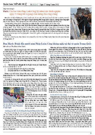 [MINH HUỆ 07-05-2012]Tuần báo Minh Huệ tổng hợp tin tức hàng tuần về cuộc đàn áp ở Trung Quốc và các sự kiện của học viên Pháp Luân Công trên khắp thế giới, với dạng thức là bản in màu định dạng PDF, gồm 4 trang. Bản PDF này định dạng khổ A4 tiện dụng cho việc in ấn phổ thông.