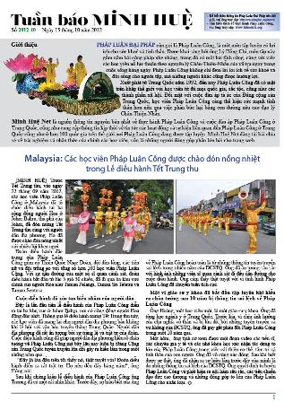 [MINH HUỆ 16-10-2012]Tuần báo Minh Huệ tổng hợp tin tức hàng tuần về cuộc đàn áp ở Trung Quốc và các sự kiện của học viên Pháp Luân Công trên khắp thế giới, với dạng thức là bản in màu định dạng PDF, gồm 4 trang. Bản PDF này định dạng khổ A4 tiện dụng cho việc in ấn phổ thông.