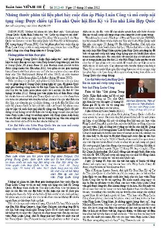 - Những thước phim tài liệu phơi bày cuộc đàn áp Pháp Luân Công và mổ cướp nội tạng sống: Được chiếu tại Tòa nhà Quốc hội Hoa Kỳ và Tòa nhà Liên Hợp Quốc