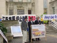 John Nania cung cấp nhiều dữ kiện về chế độ Giang Trạch Dân áp dụng chính sách khủng bố bất hợp pháp tại những quốc gia khác trên thế giới. Anh ta kể những bằng chứng về vi phạm nhân quyền khi Giang Trạch Dân thăm viếng Băng đảo, Ðức và Hoa kỳ. Anh ta đặc biệt chú ý tới những vấn đề mới xảy ra gần đây. Cách đây vài hôm, những phòng khách sạn được dành cho những đệ tử Pháp Luân Công bị bãi bỏ mà không có một lý do chính đáng nào. Ông Nania chỉ rõ rằng “Những người sống hợp pháp ở Mỹ, ngay cả những cấp chính quyền dân cử, phương tiện truyền thông, các nhà thương mại Mỹ ở Trung quốc, và các du học sinh Trung quốc đang học ở đất Mỹ này, tất cả đều là mục tiêu tấn công của tên cầm đầu Trung quốc. Ðiều này đã làm cho nhân dân Mỹ phẫn nộ”. Cuối cùng, Ông Nania mời tất cả nhân dân Texas những người đã có tiếng là nồng ấm và thông cảm hãy tham gia với các đệ tử Pháp Luân Công trong cuộc biểu tình và đòi hỏi và hãy tự chứng được chính sách ôn hoà của Pháp Luân Công.