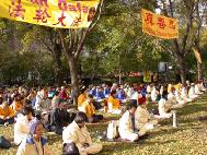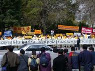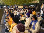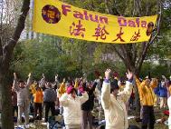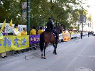 [Minh Huệ] Báo cáo từ Chicago: Vào lúc 11:25 sáng ngày 22 tháng 10 năm 2002, Giang Trạch Dân đến khách sạn Ritz-Carlton ở Chicago. Ðể tránh né hơn một ngàn đệ tử Pháp Luân Công đang biểu tình ôn hoà ngay trước cửa khách sạn, cùng với các nhóm biểu tình khác; đoàn xe của Giang Trạch Dân phải đi vào khách sạn từ bãi đậu xe. Mặc dầu Lãnh sự quán Trung quốc giàn xếp khoảng 400 người “dàn chào” từ các trường đại học ở Chicago, họ đã không thể che khuất hết những biểu ngữ như: “Pháp Luân Ðại Pháp hảo”, và “Chấm dứt đàn áp Pháp Luân Công”. Người ta có thể nhìn thấy những bộ y phục màu vàng của các đệ tử Ðại Pháp khắp mọi nơi.