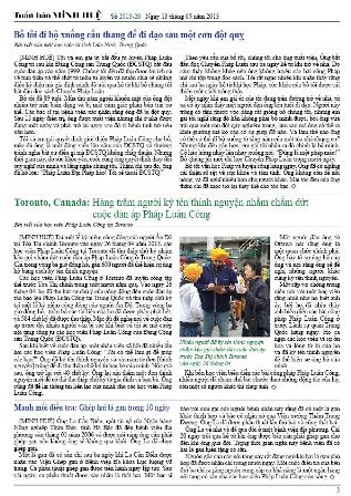 [MINH HUỆ 16-05-2013]Tuần báo Minh Huệ tổng hợp tin tức hàng tuần về cuộc đàn áp ở Trung Quốc và các sự kiện của học viên Pháp Luân Công trên khắp thế giới, với dạng thức là bản in màu định dạng PDF, gồm 4 trang. Bản PDF này định dạng khổ A4 tiện dụng cho việc in ấn phổ thông.