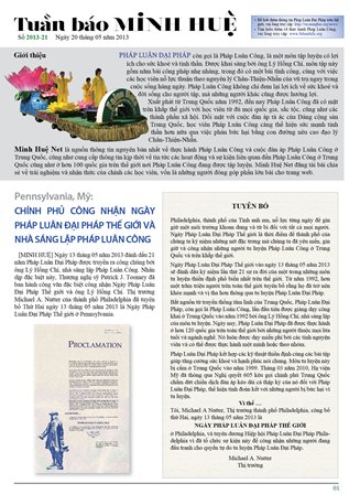- Pennsylvania, Mỹ: chính phủ công nhận ngày Pháp Luân Đại Pháp thế giới và nhà sáng lập pháp luân công