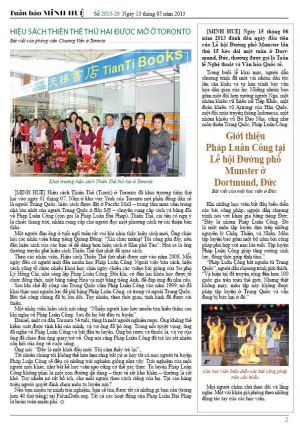 - Hiệu sách Thiên Thê thứ hai được mở ở Toronto