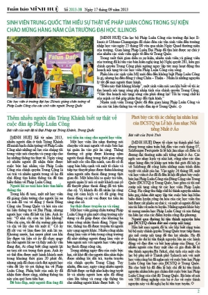 - Sinh viên Trung Quốc tìm hiểu sự thật về Pháp Luân Công trong sự kiện chào mừng hàng năm của trường đại học Illinois