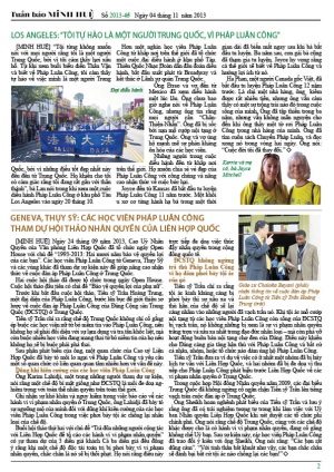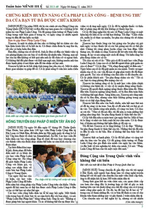 [MINH HUỆ 07-11-2013]Tuần báo Minh Huệ tổng hợp tin tức hàng tuần về cuộc đàn áp ở Trung Quốc và các sự kiện của học viên Pháp Luân Công trên khắp thế giới, với dạng thức là bản in màu định dạng PDF, gồm 4 trang. Bản PDF này định dạng khổ A4 tiện dụng cho việc in ấn phổ thông.