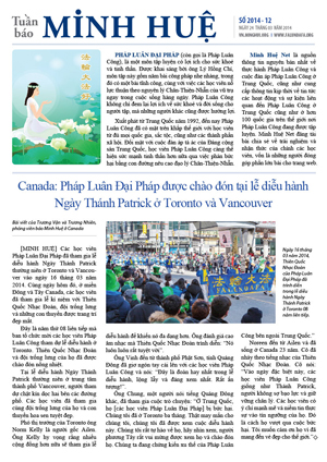 [MINH HUỆ 26-03-2014]Tuần báo Minh Huệ tổng hợp tin tức hàng tuần về cuộc đàn áp ở Trung Quốc và các sự kiện của học viên Pháp Luân Công trên khắp thế giới, với dạng thức là bản in màu định dạng PDF, gồm 4 trang. Bản PDF này định dạng khổ A4 tiện dụng cho việc in ấn phổ thông.
