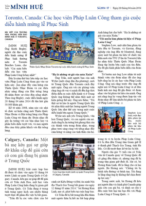 [MINH HUỆ 30-04-2014]Tuần báo Minh Huệ tổng hợp tin tức hàng tuần về cuộc đàn áp ở Trung Quốc và các sự kiện của học viên Pháp Luân Công trên khắp thế giới, với dạng thức là bản in màu định dạng PDF, gồm 4 trang. Bản PDF này định dạng khổ A4 tiện dụng cho việc in ấn phổ thông.