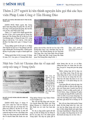 - Nhật báo Tuổi trẻ Ukraine đưa tin về nạn mổ cướp nội tạng ở Trung Quốc