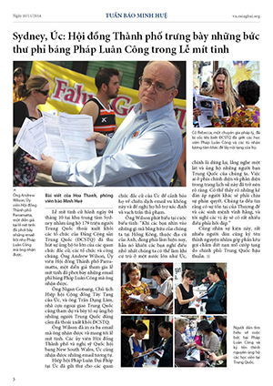 - Sydney, Úc: Hội đồng Thành phố trưng bày những bức thư phỉ báng Pháp Luân Công trong Lễ mít tinh