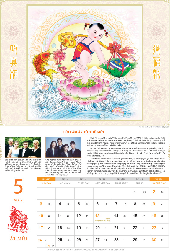 Lịch Minh Huệ 2015 (nhiều tờ)