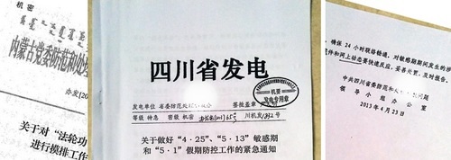 Trong một thông báo khẩn nội bộ bị rò rỉ từ Phòng 610 Tứ Xuyên ban hành ngày 23 tháng 04 năm 2013, có rất nhiều công an được điều động thêm để tiến hành bắt giữ và giám sát các học viên Pháp Luân Công xung quanh các ngày 25 tháng 04 và 13 tháng 05.