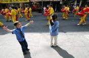 [Minh Huệ] Ngày 10-4-2004, hàng nghìn học viên Pháp Luân Công đã có một cuộc diễu hành lớn tại khu phố Tàu ở Manhattan, New York, trong đó có 9 đoàn diễu hành tất cả, mỗi đoàn “kể” về một đoạn lịch sử Pháp Luân Công. Từ khi Pháp Luân Công bắt đầu truyền xuất ra công chúng, rồi quảng bá trên toàn thế giới, và cuộc đàn áp Pháp Luân Công tại Trung Quốc. Không khí cuộc diễu hành đầy ấn tượng. Đây là một hoạt động nằm trong dịp Pháp hội quốc tế Pháp Luân Đại Pháp tại New York vào năm nay, 2004. Hôm sau, 11-4-2004, Sư phụ Lý Hồng Chí đã đích thân tới giảng Pháp cho hơn 4000 học viên.