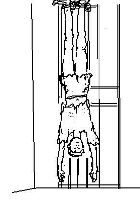 Phương pháp này thường dùng trong các trại cải tạo, trại giam hay lớp tẩy não khi các đệ tử không chịu ly khai với Pháp Luân Công. Phương pháp này bắt máu chảy ngược, gây ra ngất xỉu, bất tỉnh, hay bị chết nếu dùng trong thời gian lâu. Đôi khi công an không cho các đệ tử dùng nhà vệ sinh, rồi treo ngược họ lên để họ đái, ỉa trên đầu của mình.