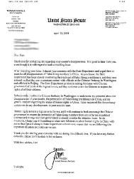 Sau khi đọc thư ông/bà, tôi có chia sẻ với Bộ Ngoại giao về quan tâm của ông/bà và khuyến khích Bộ xem xét tất cả những đệ tử Pháp Luân Công bị mất tích tại Trung quốc. Như ông/bà đã biết, Bộ Ngoại giao theo dõi rất kỹ càng sự đối xử với các đệ tử Pháp Luân Công của chính phủ Trung quốc, và họ cũng bảo đảm với tôi rằng họ sẽ liên lạc với trực tiếp và thường xuyên với các nhân viên tại toà đại sứ Trung quốc tại Hoa thịnh đốn và Bắc kinh. Bộ Ngoại giao nhấn mạnh rằng Bộ luôn luôn nêu lên những vấn đề này với những nhân viên cao cấp của chính phủ Trung quốc, và Bộ vẫn tiếp tục làm như vậy để yêu cầu chính phủ Trung quốc tôn trọng quyền tự do căn bản của nhân dân Trung quốc.